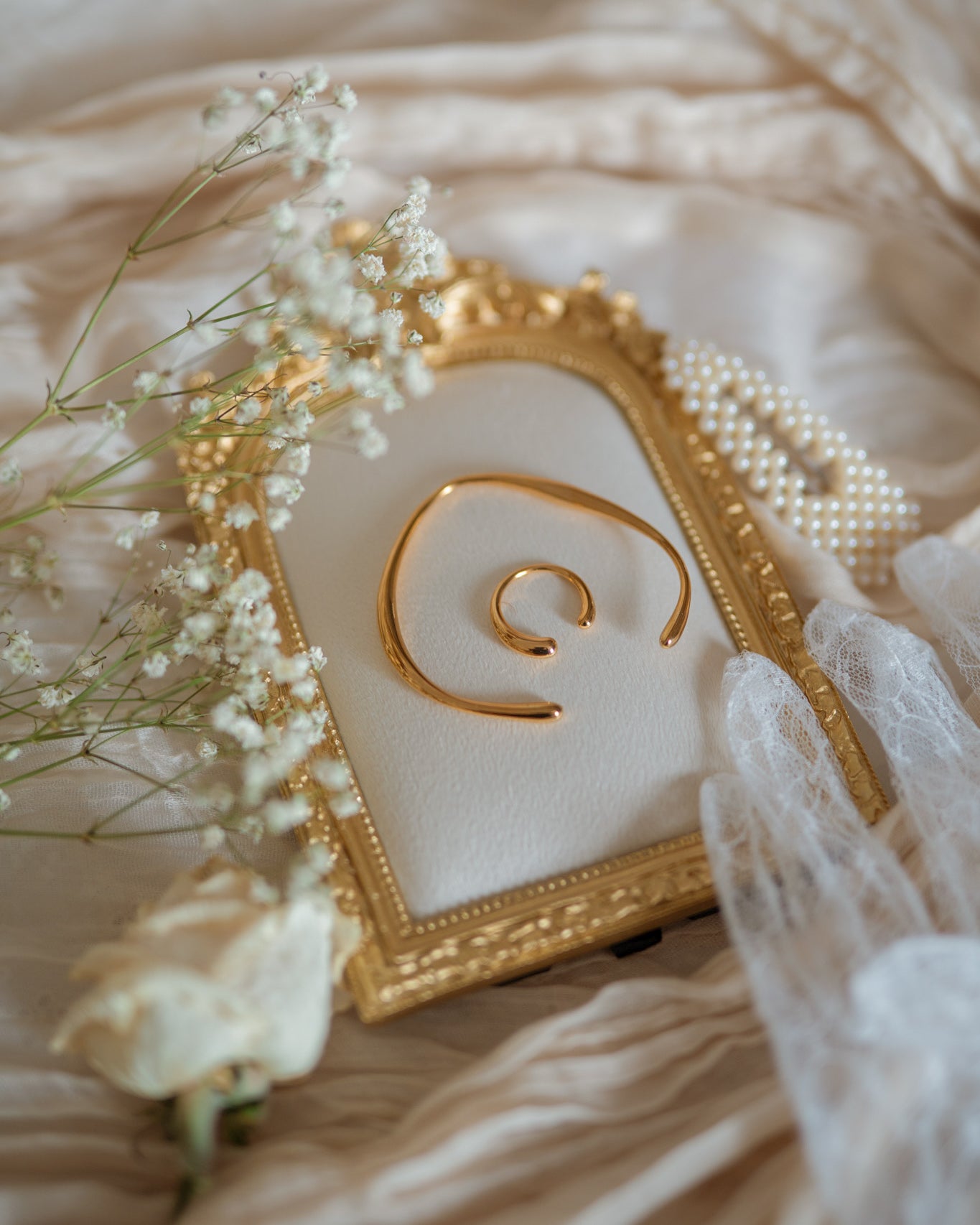 Add a touch of soft elegance to your everyday wear with the versatile PWOMÈS Cuff Bangle. Pair it with the PWOMÈS ring for a complete ring collection or use it as a base for mixing and matching. Perfect for work or casual wear!