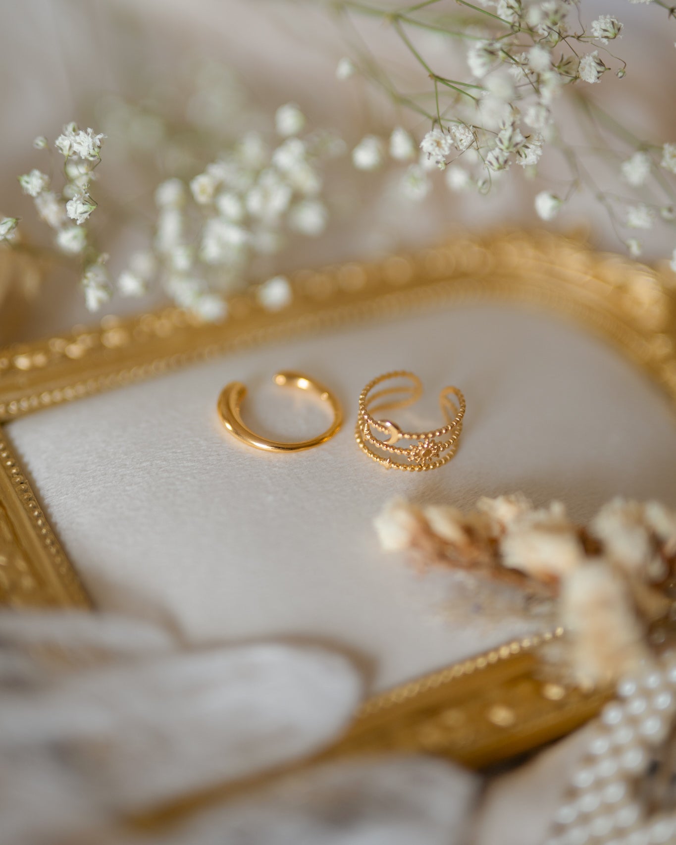 We also work with natural elements like baroque and freshwater pearls, each one unique in shape and texture.
